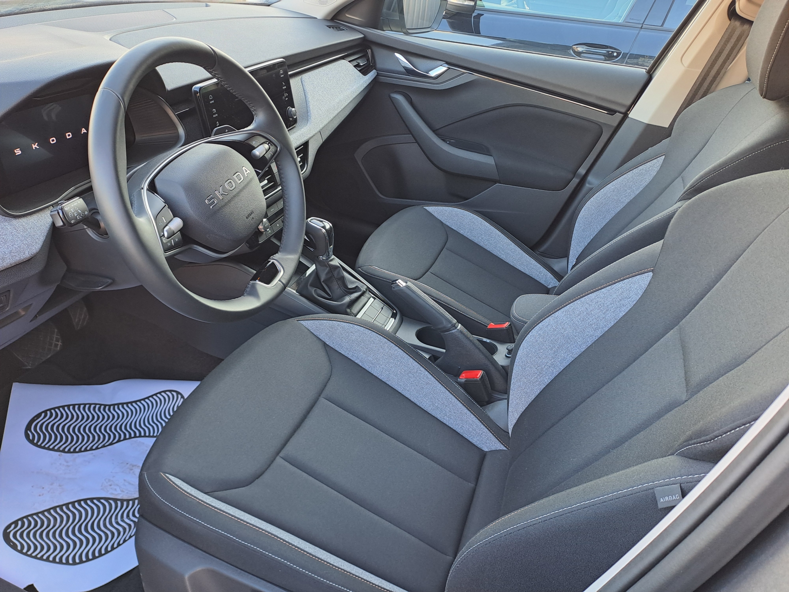 - Insert décoratif sur la planche de bord en matériau recyclé gris Krepp recycled, liseré noir glossy